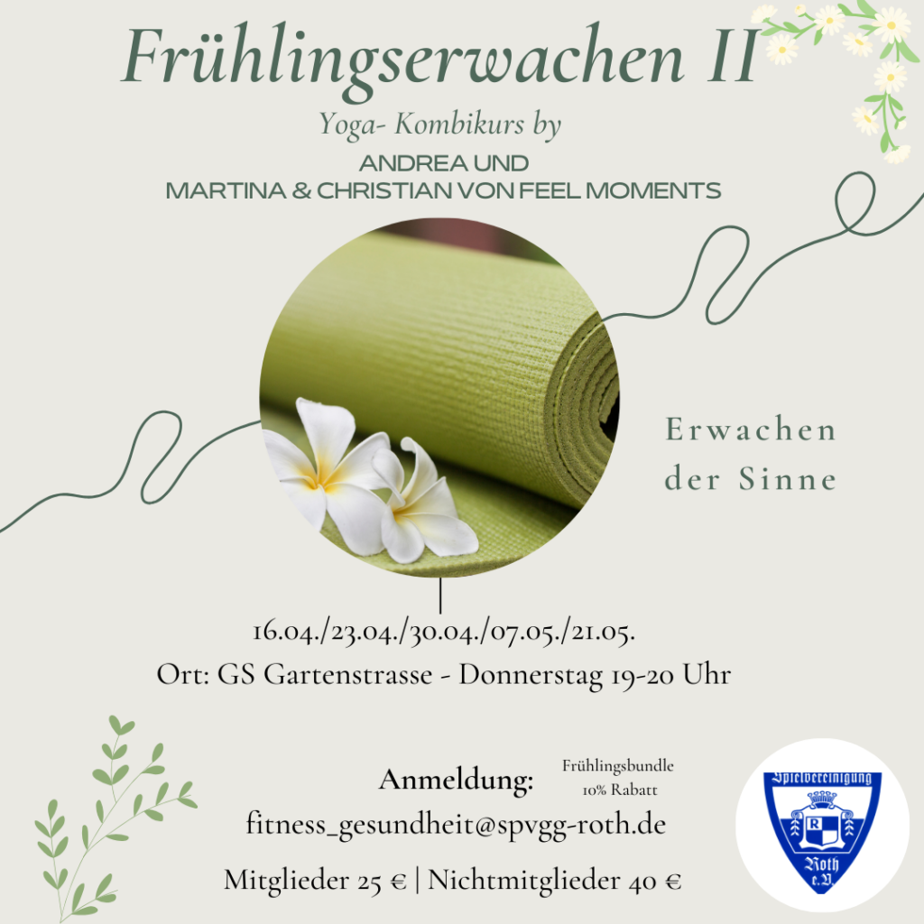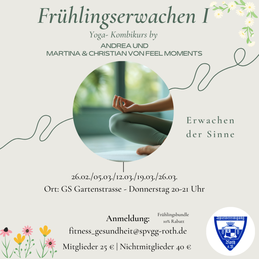In diesem besonderen Kombikurs erwarten Dich die vielseitigen Impulse von Andrea, Martina & Christian. Gemeinsam schaffen sie eine harmonische Verbindung aus sanften Bewegungen, Atemtechniken und Achtsamkeitsübungen, die Dich in Deiner inneren Kraft stärken und Deine Sinne neu beleben.